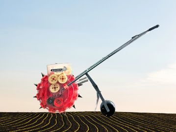 This Hand push seeder can function as one whole one seed, or one whole multi seeds, the sowing distance and depth are also adjustable.